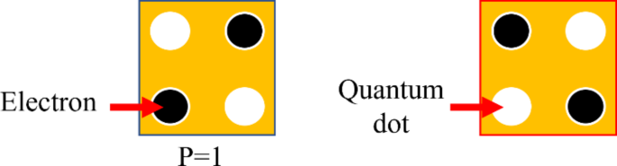 QCA’s core basic pieces are bistable cells made up of four quantum dots. Two free electrons are present in each cell and have the ability to tunnel between neighboring dots. Because of their electrostatic repulsion, these electrons preferentially occupy antipodal sites inside the cell12. As a result, two unique energetically advantageous electron arrangements occur, resulting in two possible configurations for the QCA cell: cell polarization P = + 1 and P= −1. This intrinsic duality serves as the foundation for encoding binary data in QCA, with P = + 1 representing logic “1” and P= −1 representing logic “0.” In greater detail, the idea of cell polarization governs the behavior of electrons within the QCA cell. This procedure demonstrates how easy and effective QCA is for expressing and working with binary data at the quantum level. In Fig. 1, the cell structure is displayed13,14.