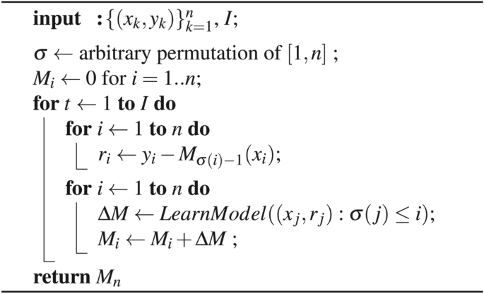 CatBoost adopts a more advantageous outlook inspirited by online learning frameworks, which process training samples sequentially over time, relying on a concept of ordering. In this method, TS for each instance are computed based solely on prior observations. To adapt this concept for traditional offline environments, CatBoost introduces a pseudo-time by creating a random permutation of the training samples. This allows the TS for each instance to be calculated with respect to all available historical data up to that point. Additionally, CatBoost employs a technique called ordered boosting, which prevents prediction shift, further leveraging the model’s reliability46. Catboost produces (s + 1) discrete random permutations of the training dataset at the beginning. Here, (sigma _0) is utilized to select the leaf scores (b_j) of the generated trees (h(x) = sum _{j=1}^{J}b_jmathbb {I}_{{xin R_j}}), and the permutations (sigma _1,…,sigma _s) are used to establish tree structure (like internal nodes). Let the model training is performed employing I trees. There have to exist (F^{I-1}) of them exercised without the sample (x_k) if there exist unshifted residual (r^{I-1}(x_k,y_k)). Instances cannot be used in training (F^{I-1}) since unbiased residuals are necessary for all training samples. Nevertheless, it is possible to maintain a set of models that differ with respect to the samples included in their training process. To compute the residual for a particular example, a model trained without that example is utilized. This set of models can be constructed through application of the same ordering principle utilized for TS. The algorithm for this approach is showcased as follows: